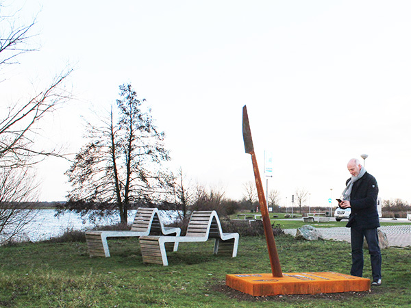 The spear is located at the (yacht)port of Neer, where the bicycle and pedestrian ferry from Neer also operates during the summer.
